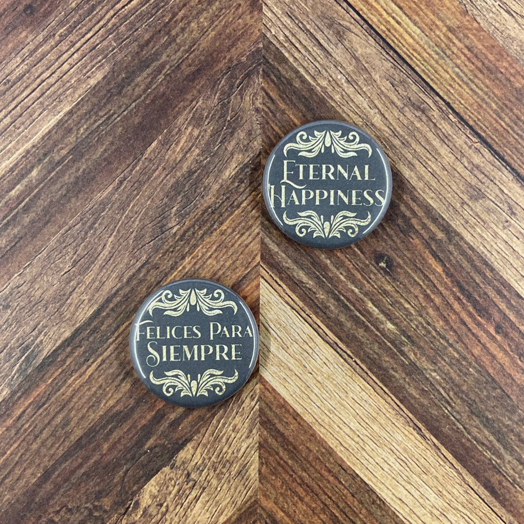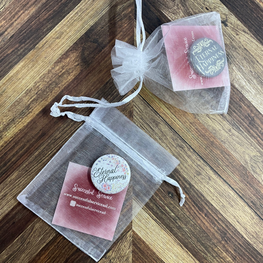 Each button measures 1.25”. Select either button pin or magnets when adding to cart. Available in packs of 5, 10, 20, or 50 in English or Spanish, these buttons come individually packed in organza bags, ready to be gifted! (Organza bag color may vary.) Please allow for a slight variation in color due to lighting and your screen display.