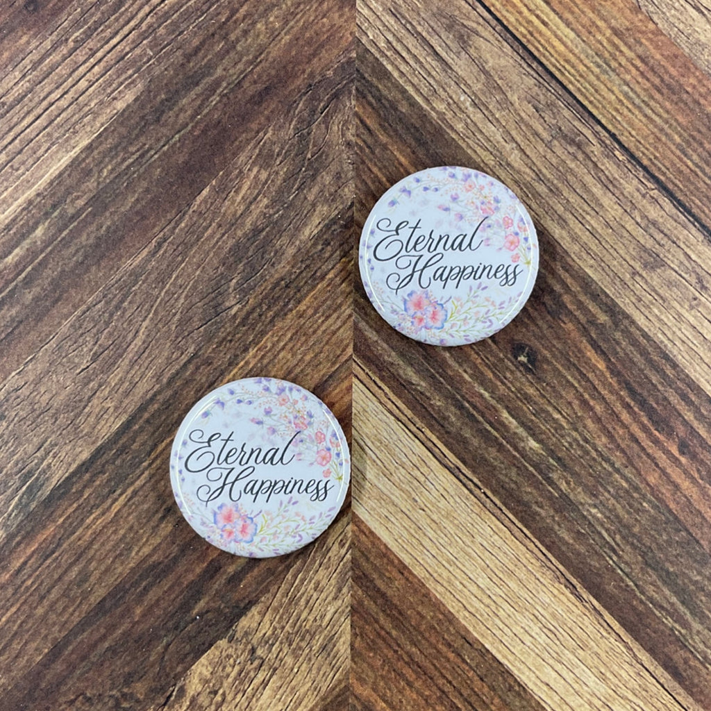 Each button measures 1.25”. Select either button pin or magnets when adding to cart. Available in packs of 5, 10, 20, or 50, these buttons come individually packed in organza bags, ready to be gifted! (Organza bag color may vary.) Please allow for a slight variation in color due to lighting and your screen display.
