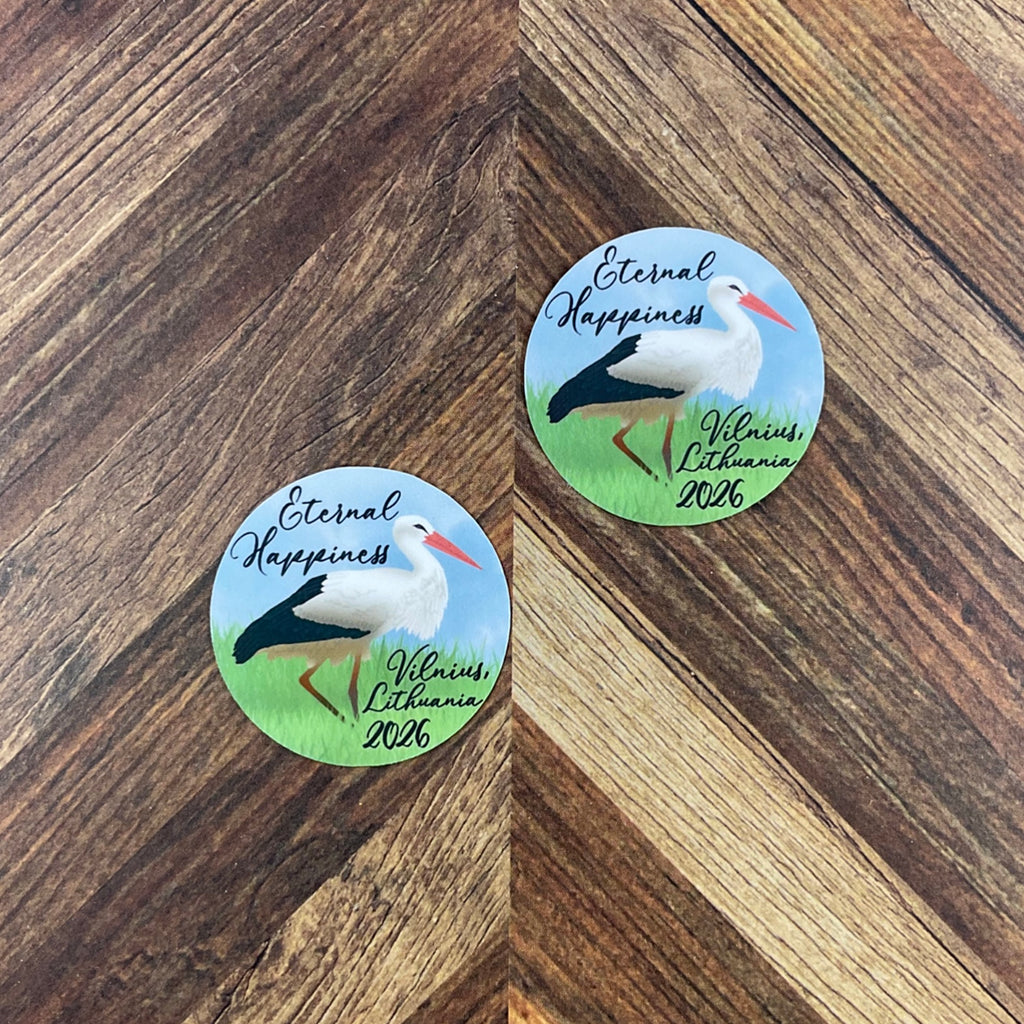 Are you excited about this year’s International Convention, “Eternal Happiness”? So are we! These waterproof stickers are made specifically for the 2026 International Convention in Vilnius, Lithuania featuring the national animal, the white stork.