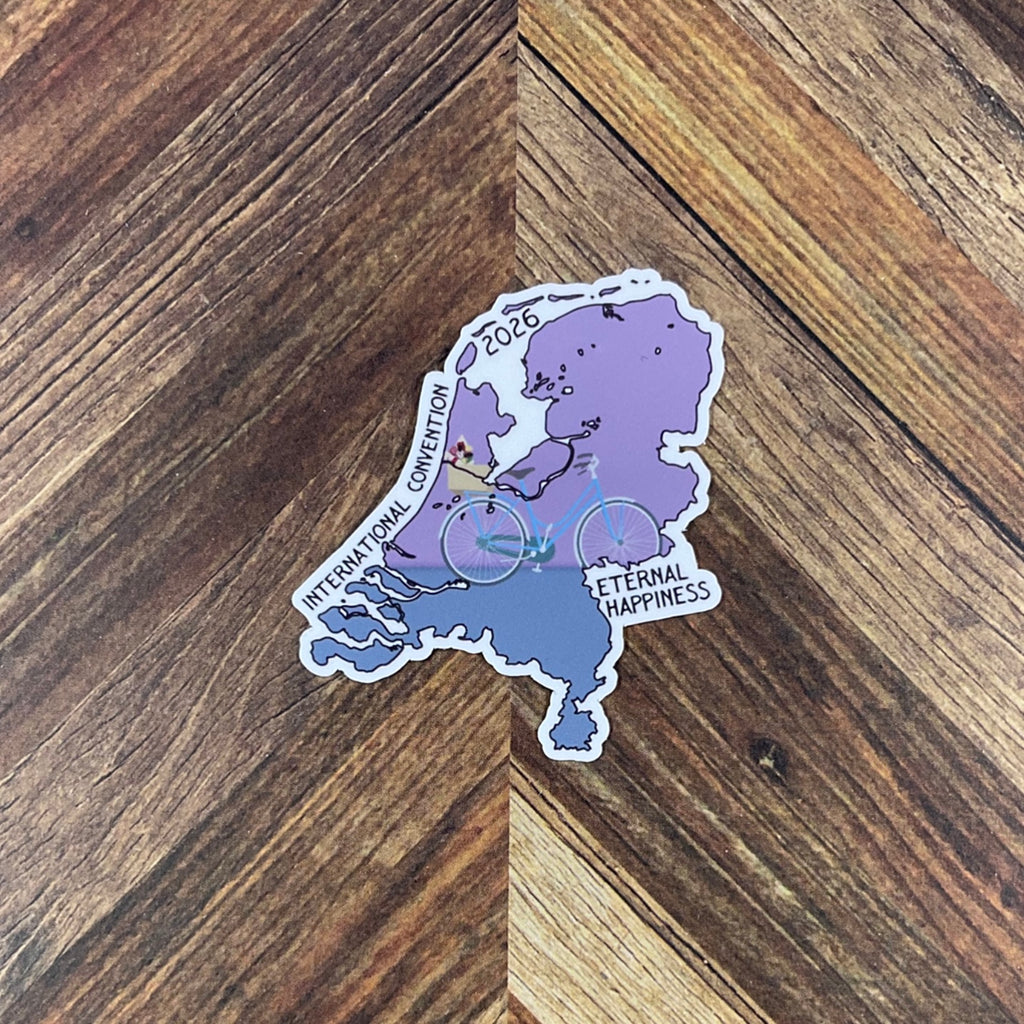 Are you excited about this year’s International Convention, “Eternal Happiness”? So are we! These waterproof stickers are made specifically for the 2026 International Convention in Utrecht, Netherlands, the county known for its cycling culture.
